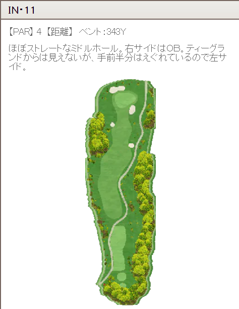 まっすぐなホールですが、右から飛び出している林が狭さを感じさせます。